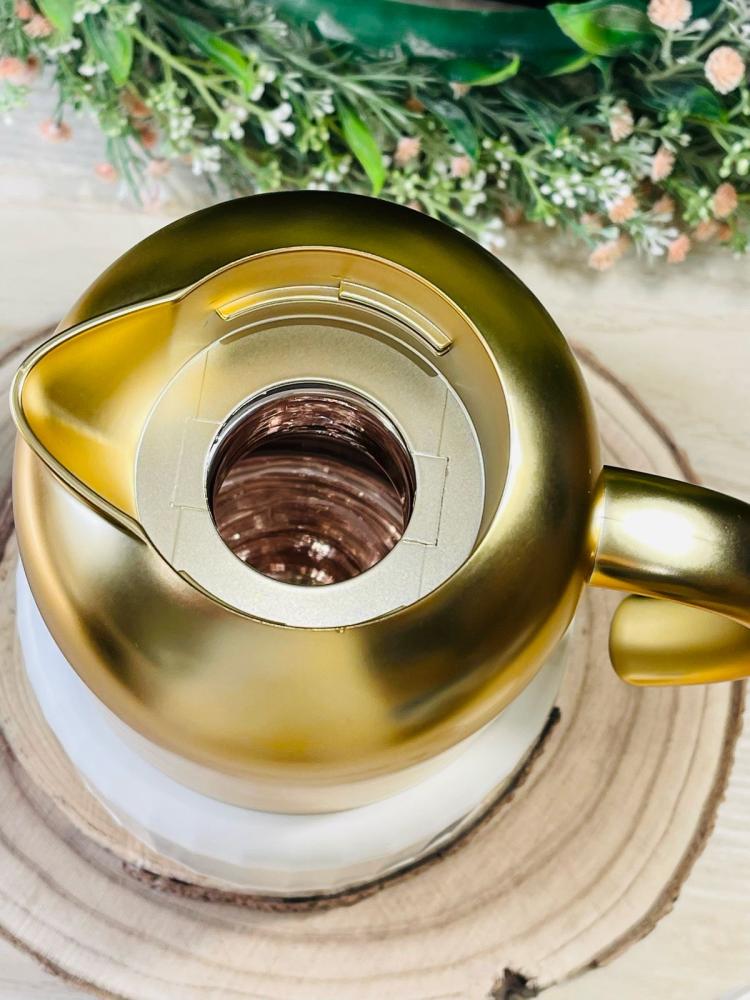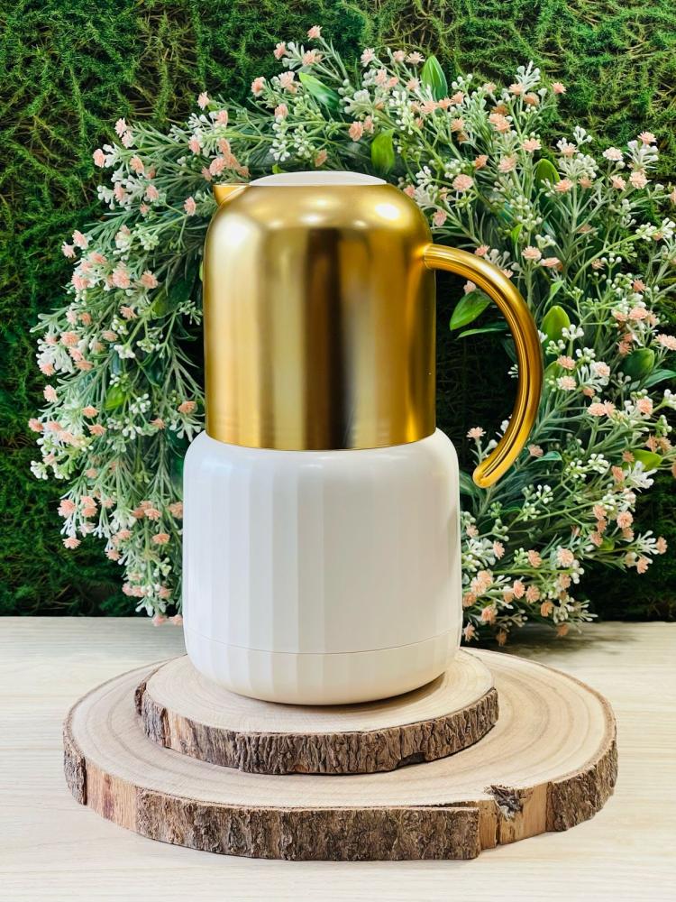 ترمس فاخر يليق بتقديماتك الفاخرة لاتترددي باقتناءه لتظهري مدى رقي ذوقك وجمال اختياراتك. السعه لتر واحد.
