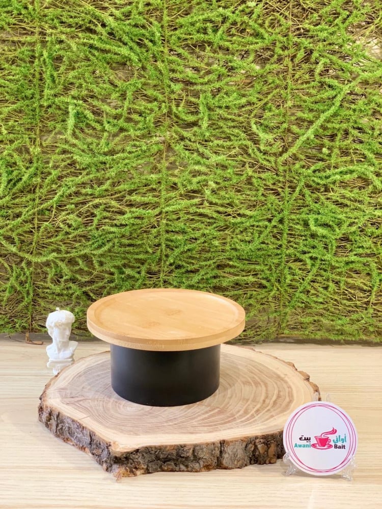 منتج عصري وغير تقليدي عبارة عن علبة بلاستيكية للتخزين قطرها 12 سم وارتفاعها 7 سم عليها صحن تقديم خشبي قطره 17 سم لتشكل ستاند رائع وعملي.
